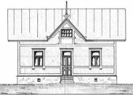 Byggmästaren Hilda Hongell ritade huset och uthuset som uppfördes på denna tomt år 1900. Då huset byggdes var ägaren till tomten troligen muraren Johan Leander Mattsson. En förstukvist med två ingångar tillkom år 1914, och samtidigt förlängdes uthuset med fem meter. År 1919 försäkrade nye ägaren, vicehäradshövding Leonard Nordling, sitt hus som han låtit renovera invändigt. Mikalia Eriksson köpte gården av Nordling år 1926. Bilden visar ritning av Hilda Hongell år 1900, fasad mot Ålandsvägen.