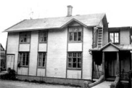Timmermannen Ruben Öfverström byggde gårdshuset när han kom hem från USA år 1919. Öfverströms och Dahlmans på granntomten uppförde sina hus vägg i vägg. I bostadshusets källare hade Öfverström sin första snickarverkstad. Huset byggdes till ett par gånger, bl. a. tillkom en ny snickarverkstad i en vinkelbyggnad till bostadshuset. I tegelbyggnaden som länge stod kvar på tomten fanns rester av den tillbyggnad som gjordes på 1920-talet. För att lättare kunna transportera stockar till tomten hade Öfverström grävt en kanal från Slemmern till såghuset vid stranden. Ytterligare en byggnad på tomten användes som torkhus för virket. Bilden visar Ruben Öfverströms hus år 1929.