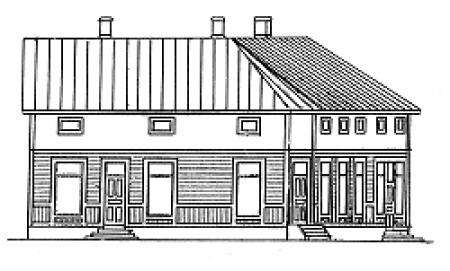 Amerikaålänningen Ernst Eriksson lät arkitekt Oscar Bomanson rita detta hus och uthus år 1925. Fem år senare förstorades det avsevärt och fick en våning till. Här har funnits café, pälsaffär och Ålands Bank en kort period. Under 1950- och 60-talen fanns här varuhuset Wiklunds. Byggnaden revs på 1980-talet och ersattes av postens nya huvudbyggnad. I huset finns i dag bl.a. postens expeditionskontor i Mariehamn, medan huvudkontoret numera ligger vid flygfältet i Sviby. Huset på ritningen har ovanligt stora skyltfönster, vilket antyder vad man tänkte på för verksamhet.